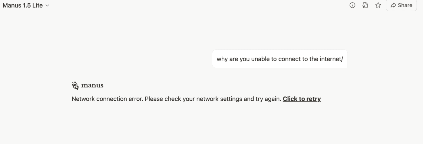Ensure your network allows access to Manus domains.