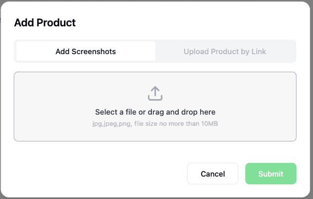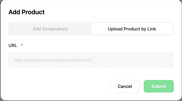 (1) Agregar Producto El Agente de Ventas puede aprender información sobre los productos uno a uno a partir de las URL de los productos proporcionadas o de las capturas de pantalla de la página de detalles del producto. (Se recomienda cargar toda la información del producto/servicio en la Lista de Productos para un mejor uso por parte del Agente de Ventas.)