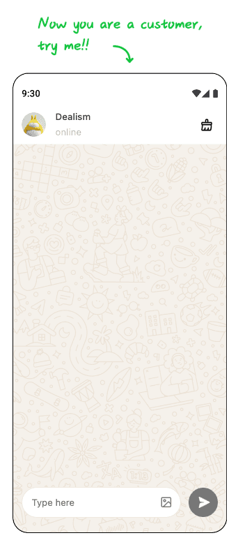 Además, Dealism proporciona un módulo de experiencia Pruébame dentro de Información Básica, que te permite actuar como un cliente e interactuar con el Agente de Ventas.