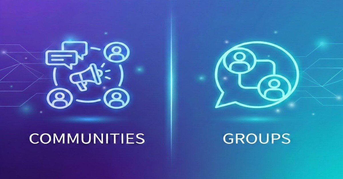 Em resumo, as Comunidades são projetadas para escalabilidade, gerenciamento estruturado e coordenação de múltiplos grupos, tornando-as ideais para empresas e grandes organizações. Os Grupos, por outro lado, são mais simples, flexíveis e mais adequados para pequenas equipes ou discussões focadas. A escolha do formato certo depende de seus objetivos, tamanho do público e do nível de controle que você precisa.