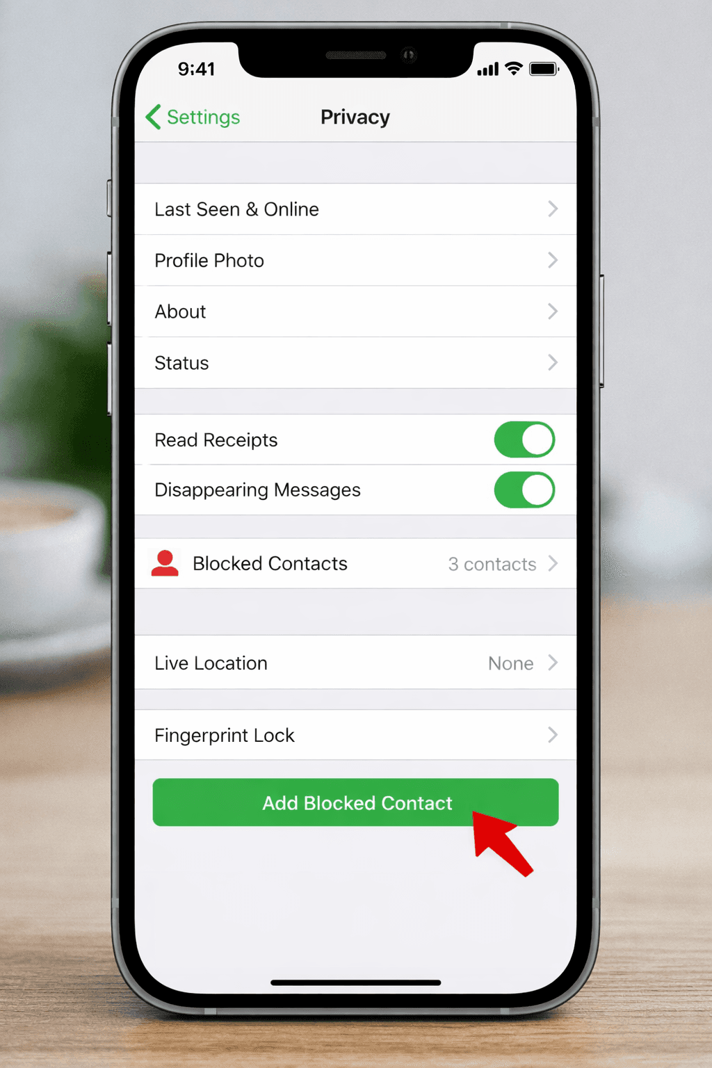 Baseado na FAQ do WhatsApp(texto alternativo: configurações de bloqueio do whatsapp ios):