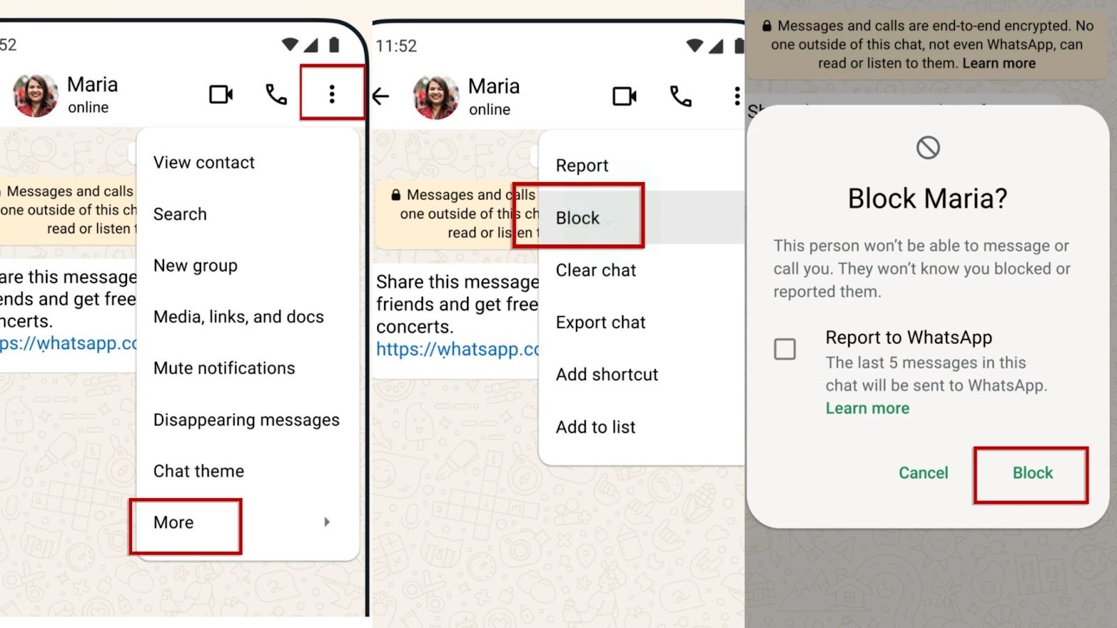 → Mais → Bloquear > Bloquear.