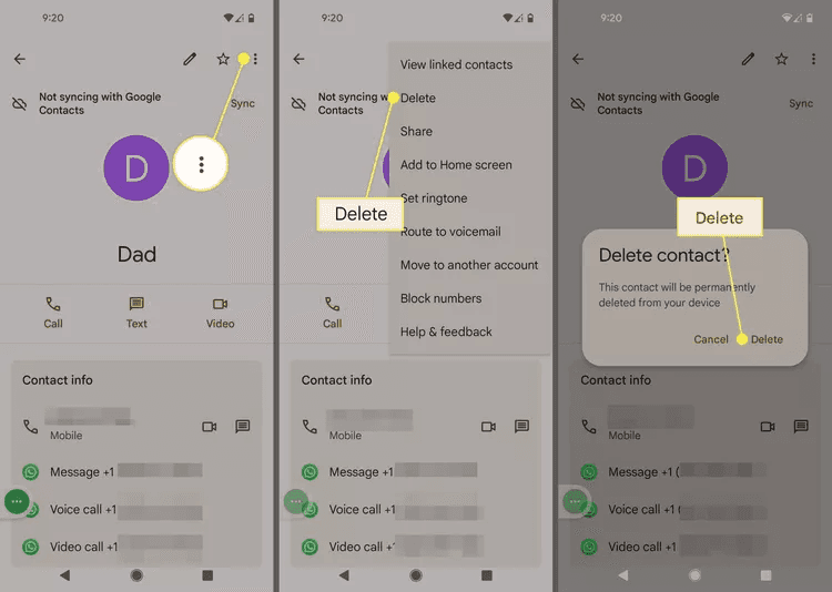 Se você habilitou a sincronização de contatos do WhatsApp, excluir o contato também o removerá do seu telefone